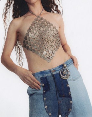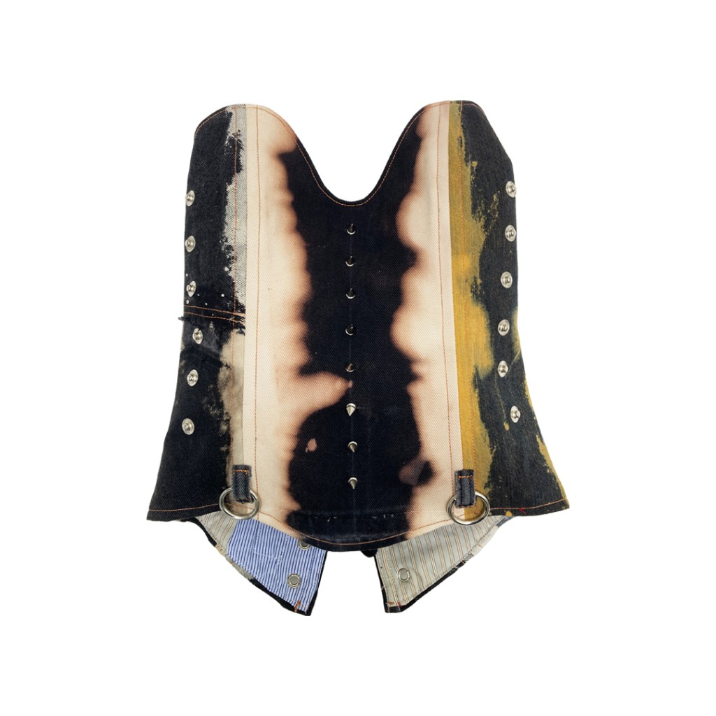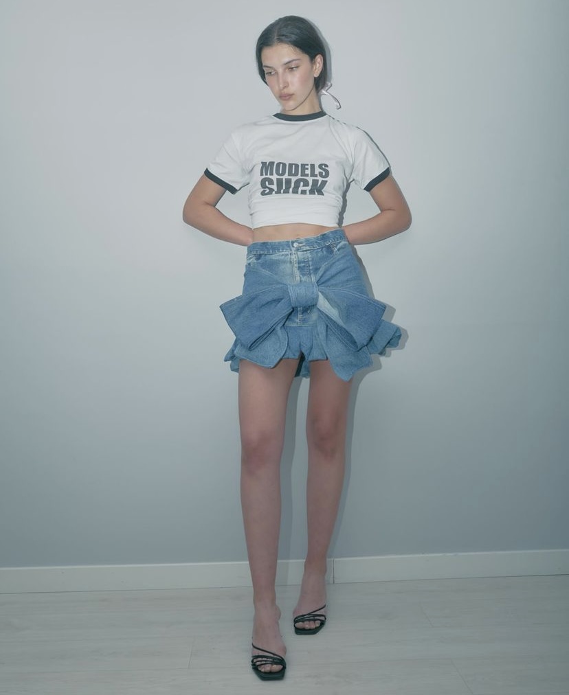 She has a lot of dark and sexy pieces, like leather corsets, and a big selection of spikey and studded baseball caps. It’s giving punk rock. But I think my favourites are the denim pieces. There’s an incredible denim puffer jacket that I can see becoming seriously popular, and some really, really cool patchwork t-shirts and tank tops. But I think it’s the orange and red tank that’s calling my name…