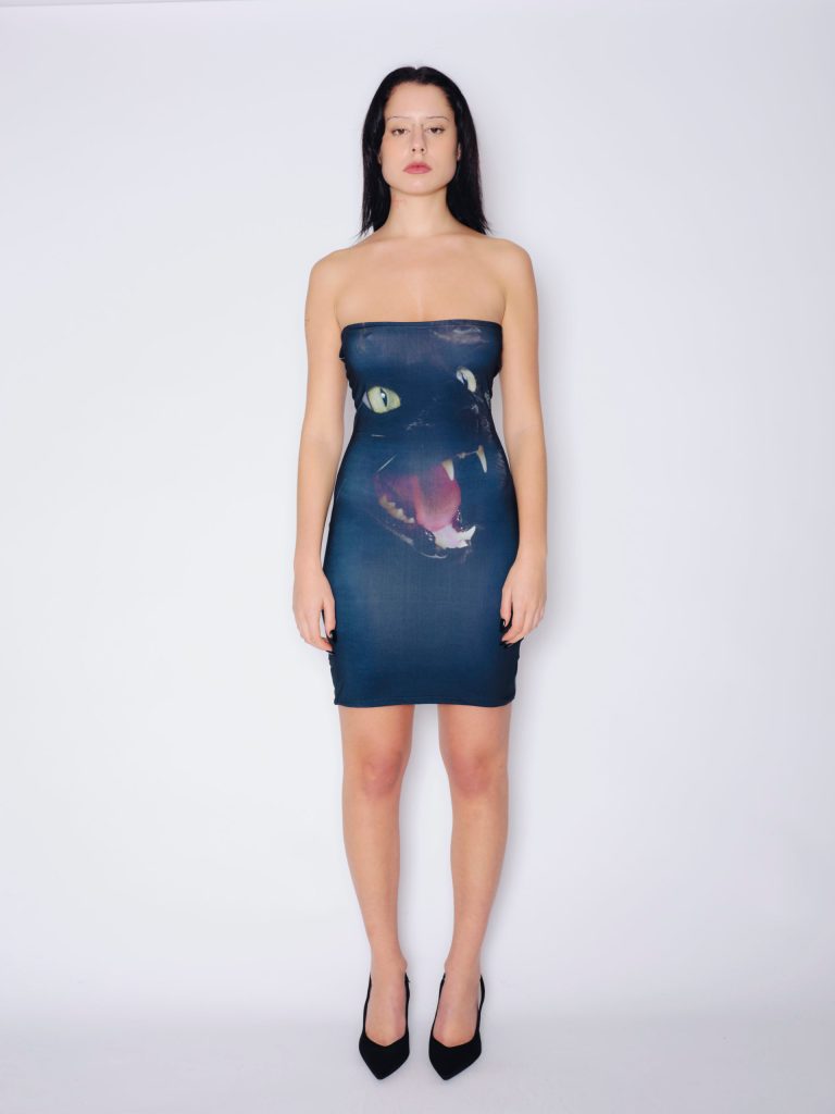 One of my personal favourites is the collection of bags embossed with ‘ciao‘ (available in black, pink, and silver). The leather was rescued from surplus Mexican leather goods manufacturers which makes them even better. I also love the pussycat skirt and dress. They’re kinda terrifying but in a really wonderful way.